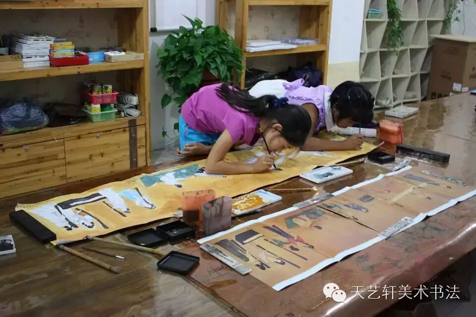 第一期8月1日-8月5日 第二期8月8日-8月12日 平铺一张素纸,提笔,落画落字,将这个夏日的安然与静谧,用手中的笔写下来。有童趣袭来,宛若墨痕,在纸上自由晕染而开。这抹童趣在寂静里唱响,唱出一首童年的故事,不夸张,不炫耀,却叫人过目不忘。 画:一幅国画大作,一幅油画大作,一幅线描大作(每期中间有一次外出写生)。 书法:书写一幅大作(六尺以上),有基础的根据实际另外安排。 手工:泥艺、纸艺、布艺、木艺 Day10 AM: 1、拓印书法 2、书法实践 3、独立创作完稿 中午:游戏。